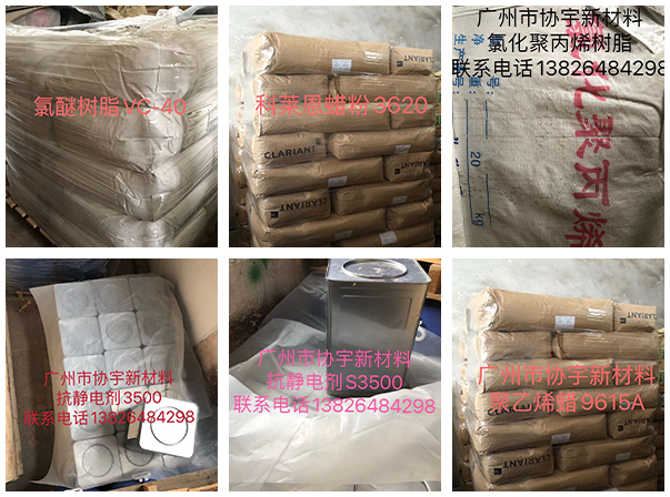 廣州市協宇新材料科技有限公司主要經營油墨,涂料原材料:1.助劑:L-18分散劑、分散劑1314、分散劑L-1800、抗靜電劑HL-20、新產品C601抗靜電劑(水性、油性通用)三洋化成新一代環保新型材料:L-1800、L-1801新一代醇水分散劑、抗靜電劑3500、超濃縮靜電劑AE-2、芥酸酰胺、油酸酰胺、BOK-205助劑、東洋銀漿0231T、O溶劑(殘留溶劑減少劑)、定向劑2.樹脂:達瑪樹脂、醛酮樹脂、MP-45氯醚樹脂、EVA-40W、CPP(氯化聚)、改性氯化聚樹脂:813A、PP803、PP-16LP、聚胺脂樹脂、亞克力UV樹脂(B3989、6332、6278、6380)、A102環氧樹脂改性酸樹脂、附著力樹脂HD-95、A-81醛樹脂、醛酮樹脂CK-613.科萊恩蠟粉(3620、9610F、9615A、3920F、5551、3910)、3901,SP-30涂料原材料:1.蠟漿:防沉劑6900-20X,7000-20X、定向劑(SA652A、SA653A)、水性蠟乳液、水性色漿2.科醚恩蠟粉:9610F、9615A、3620、3920F、39103、涂料多功能助劑:防沉劑、潤濕分散劑、抗靜電劑、流平...